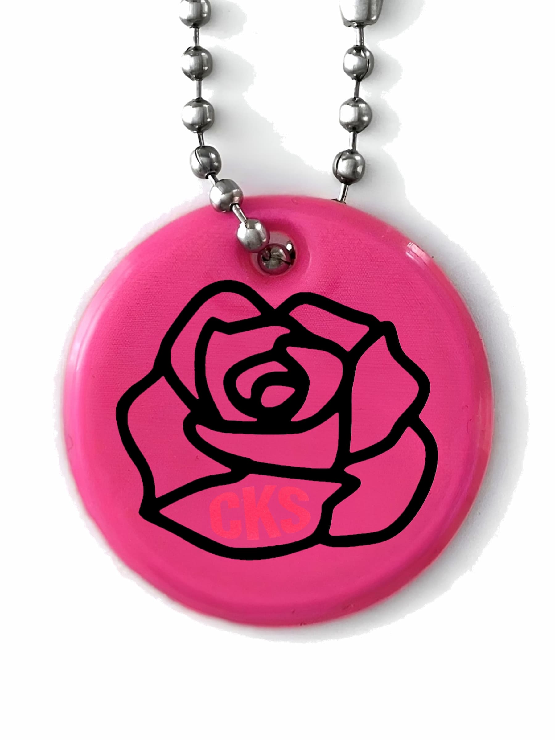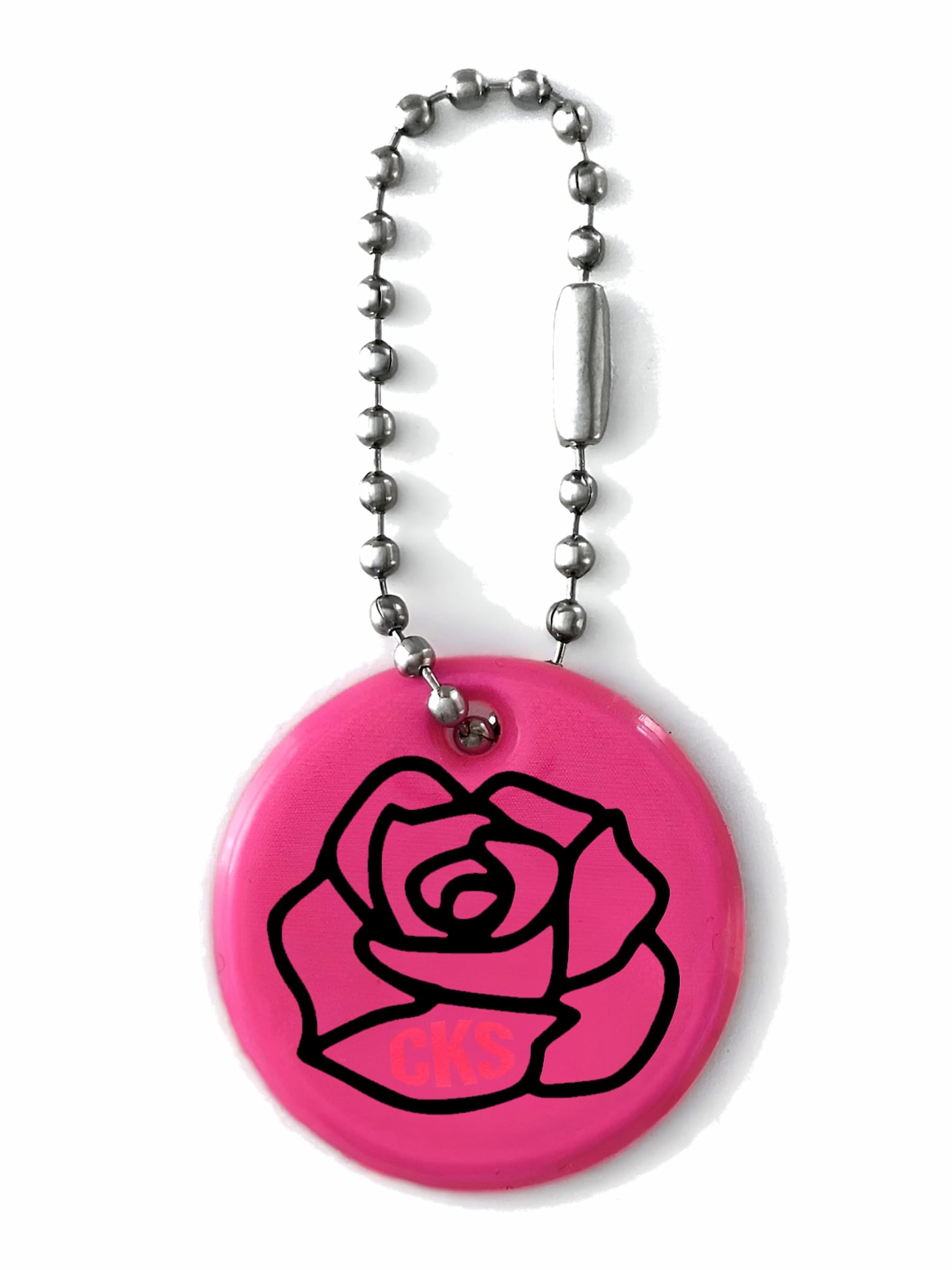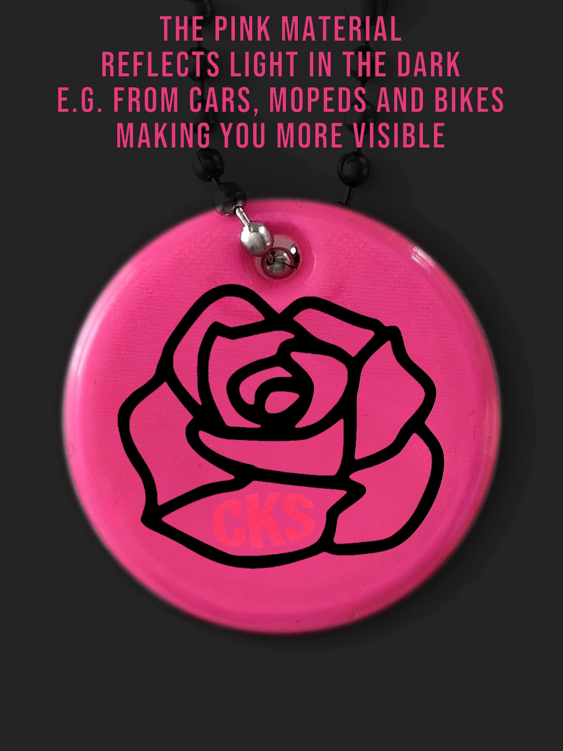 Rund reflex med en abstrakt ros. Perfekt present till nån du tycker om. Hakas enkelt direkt på en ryggsäck, väska, dragkedja, jacka, nyckel-/mobil-/plånbokskedja, husdjurkoppel, barnvagn etc. Det silver färgade materialet reflekterar ljus i mörkret från t.ex. bilar, mopeder och cyklar, vilket gör bäraren mer synlig. Se våra videor för att se den in action och reflex effekten.