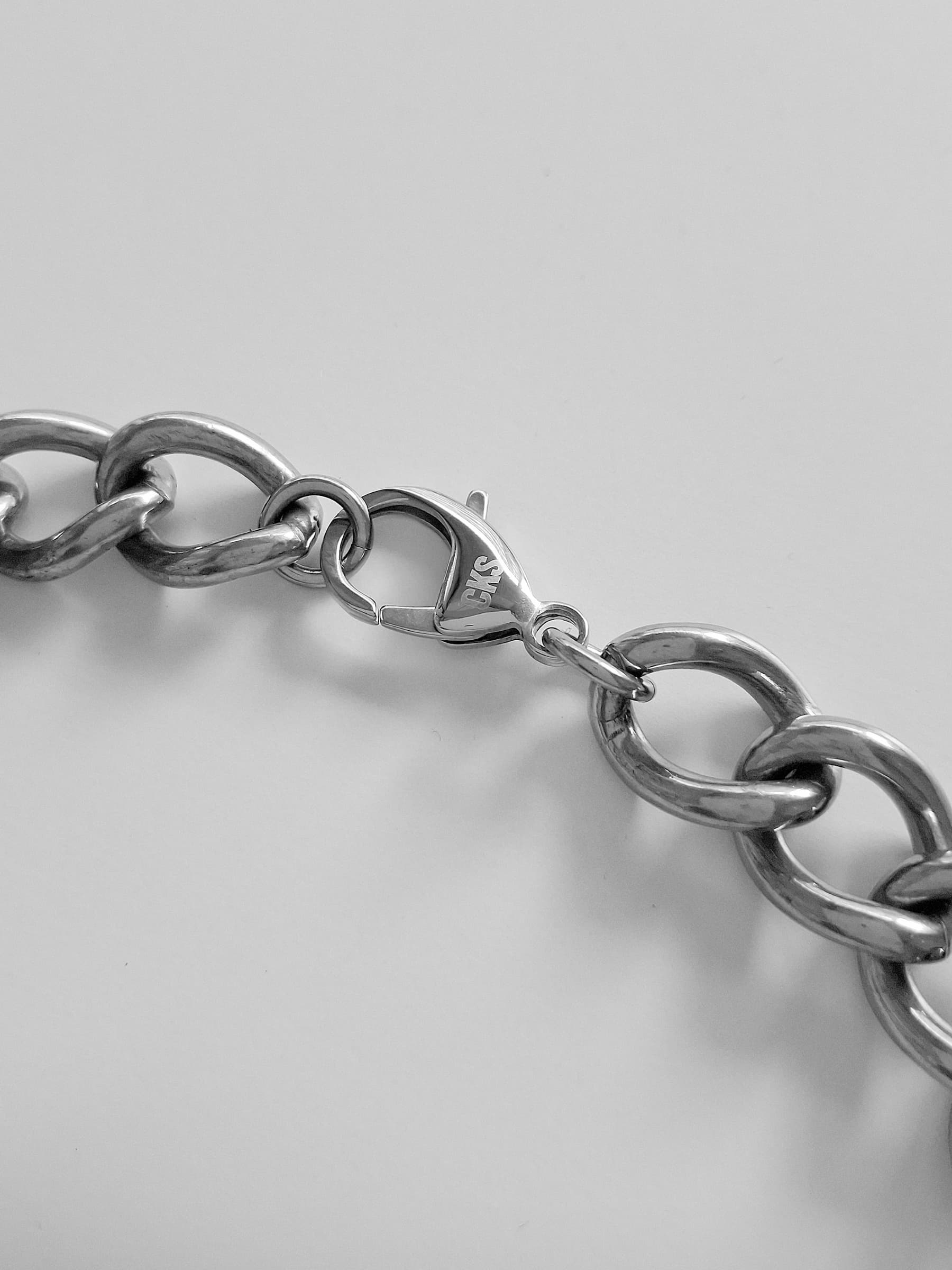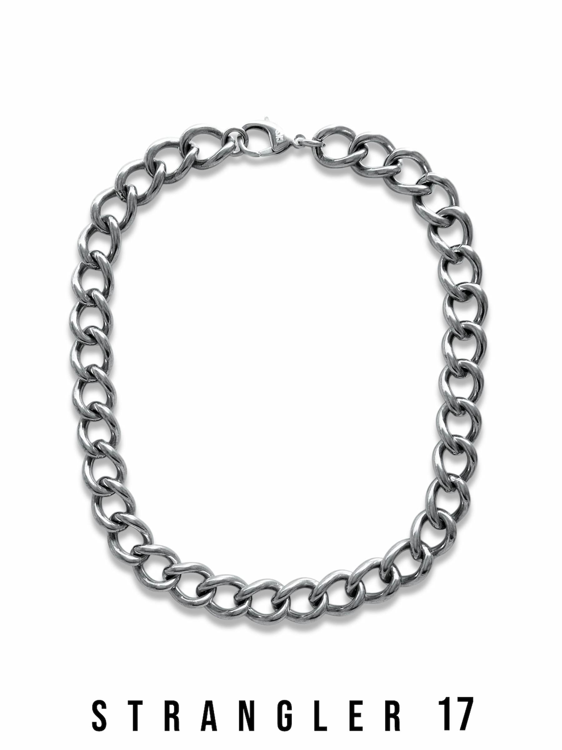 Strangler halsband i rostfritt stål med en 27mm drop hook. En riktigt fet halsband med kedjebredd på 17mm som kan bäras varje dag året om, eller tas på endast för speciella tillfällen.
